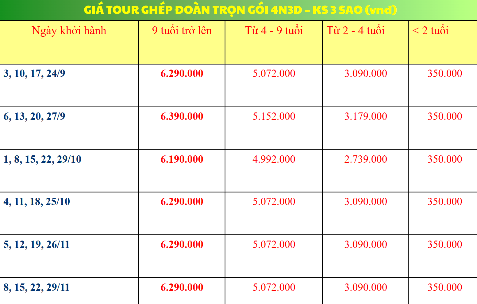 *Tour sử dụng xe đời mới, khách sạn 3 sao tại trung tâm, hướng dẫn viên kinh nghiệm và bảo hiểm du lịch đầy đủ, đảm bảo chuyến đi an toàn và thoải mái.