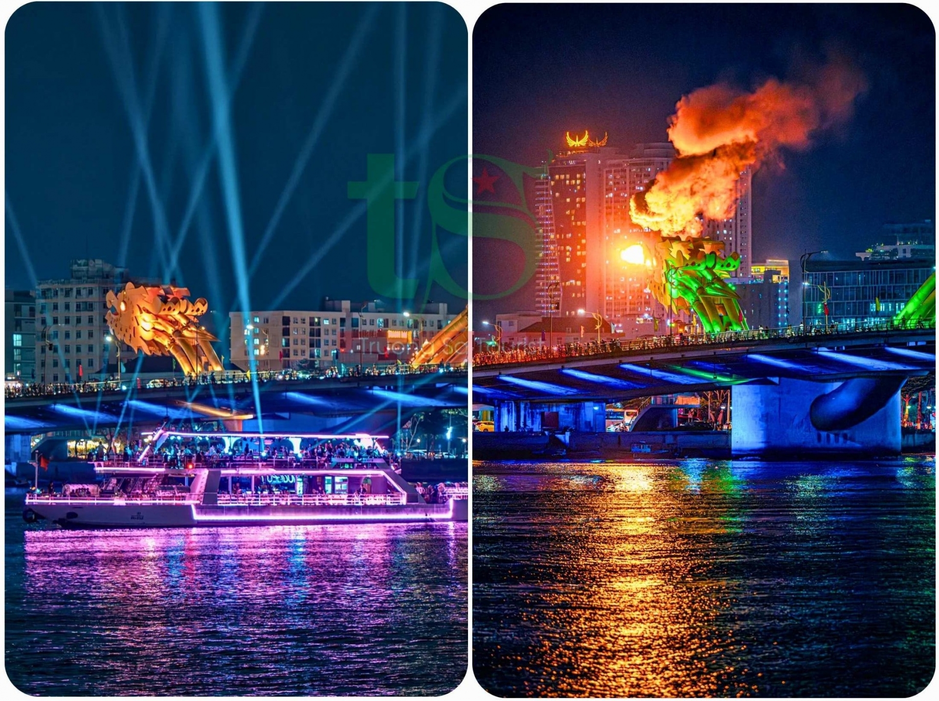 Tối: Ăn tối tại nhà hàng. Sau đó, du khách có thể tự do khám phá phố đêm Đà Nẵng, ngắm Cầu Rồng phun lửa, Cầu Tình Yêu, hoặc ngồi du thuyền trên sông Hàn (chi phí tự túc).