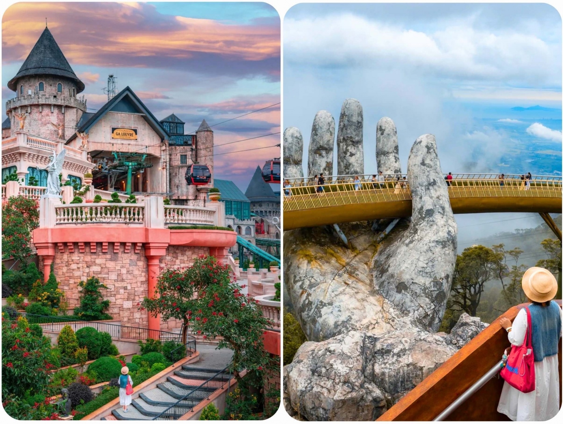 - Bà Nà Hills – khu du lịch trên núi với cáp treo kỷ lục, Cầu Vàng nổi tiếng và làng Pháp cổ kính.